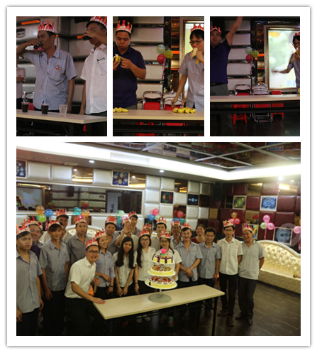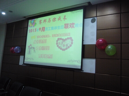 與此同時,佛山南海賽邦也在一樓培訓(xùn)室舉行9月份生日會,生日會的場地于當(dāng)天下午16點前早就布置好了,周圍沾滿氣球,現(xiàn)場氣氛熱烈。當(dāng)月的壽星們同各部門人員聚齊在一起,發(fā)生日卡,收集員工生日祝福,壽星許愿,吹蠟燭,唱生日歌,切蛋糕。大家其樂融融,幸福縈繞其中,也增加了員工的歸宿感。