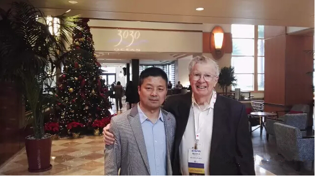 受游一中主任的特別委托,邵慶輝先生拜會了Mr Monty Johnsen和夫人,轉(zhuǎn)達(dá)了思念和衷心祝愿,贈送了代表中國傳統(tǒng)文化的中國汝瓷——如意,并共進(jìn)午餐!Mr Monty Johnsen1925年4月出生于紐約州,二戰(zhàn)期間作為美國海軍少尉參加中途島戰(zhàn)役,并積極支持中國的抗日戰(zhàn)爭,曾任美國特種化學(xué)品制造者協(xié)會(CSMA)主席,是國際著名的氣霧劑權(quán)威,出版《The Aerosol Handbook:Formulation,Technology﹠Marketing》專著,并和游一中主任一起出版該書的中文版,該書對全球,包括中國的氣霧劑工業(yè)的發(fā)展起到了指引作用。Mr Monty Johnsen雖已年逾九旬,但是仍然精神矍鑠,并且連續(xù)參加了多場論壇并發(fā)表演講!